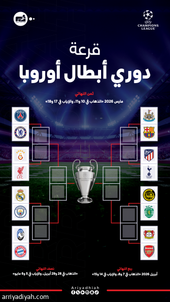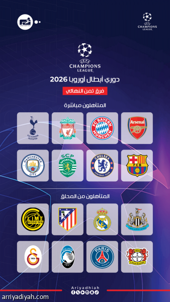 دوري أبطال أوروبا 2026 فرق ثمن النهائي